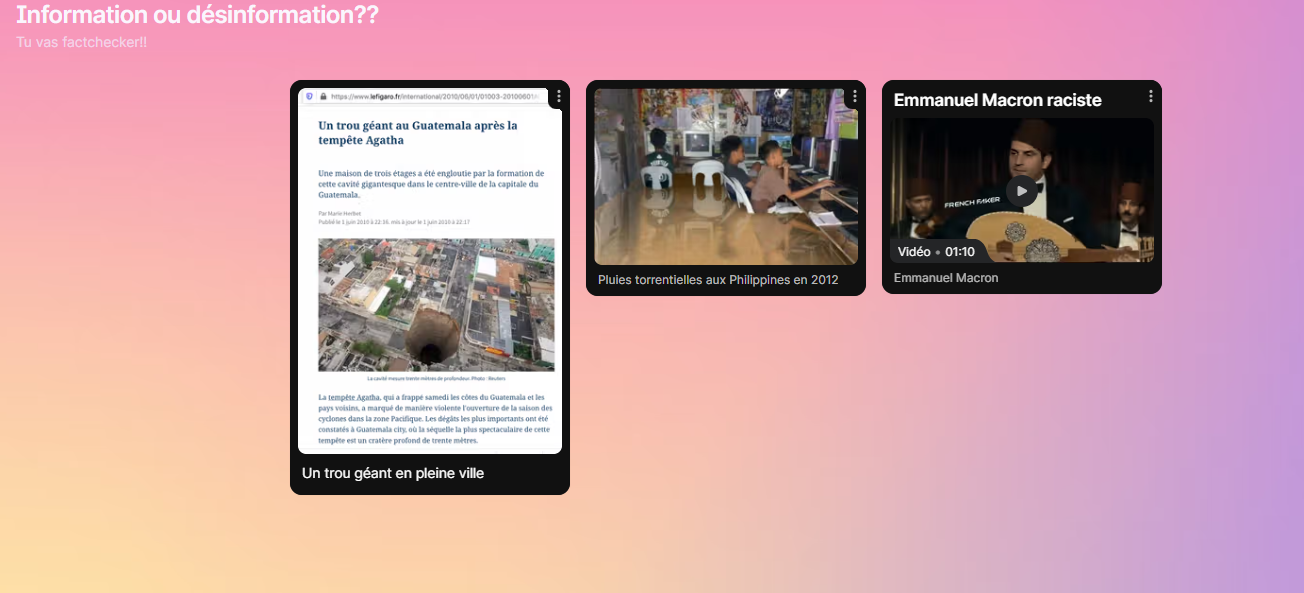 - Madame Legourd a donné des méthodes et outils numériques aux 3ème pendant la séance "Fake news" afin de leur apprendre à fact-checker/Débunker les publications (photographies, vidéos) sur différents réseaux sociaux, médias en ligne.